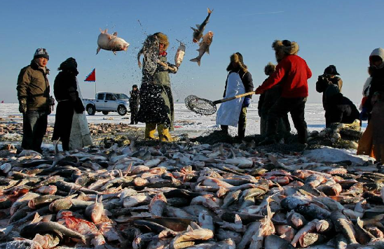 查干湖冬捕,即查干湖冬季冰雪捕魚(或稱漁獵),是吉林省松原市前郭爾羅斯蒙古族自治縣一種傳統的漁業生產方式(習俗),也是著名的吉林八景之一。早在遼金時期,查干湖冬捕就享有盛名。祭湖、醒網、鑿冰、撒網,數萬斤鮮魚脫冰而出,極富民族特色。雖然歲月更迭,查干湖冬捕的神奇、神秘與神聖依舊。查干湖冬捕奇觀已被列入吉林省省級非物質文化遺產名錄