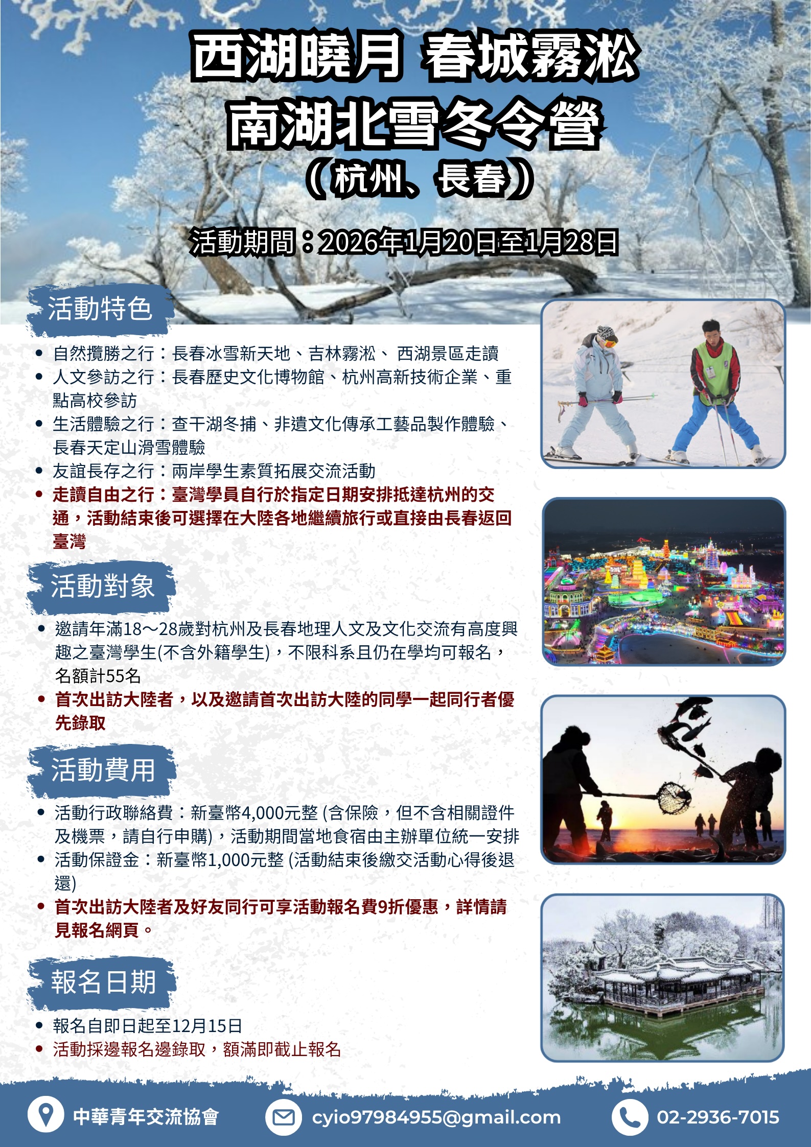 2026【西湖曉月 春城霧淞】南湖北雪冬令營