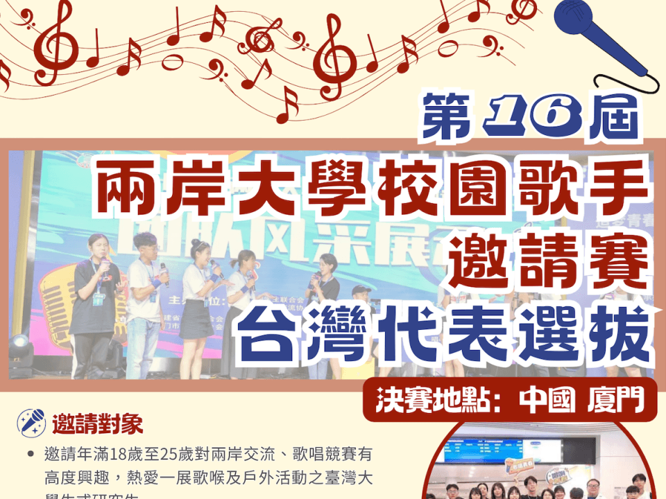 (已截止報名)2024第十六屆兩岸大學校園歌手邀請賽 台灣代表選拔