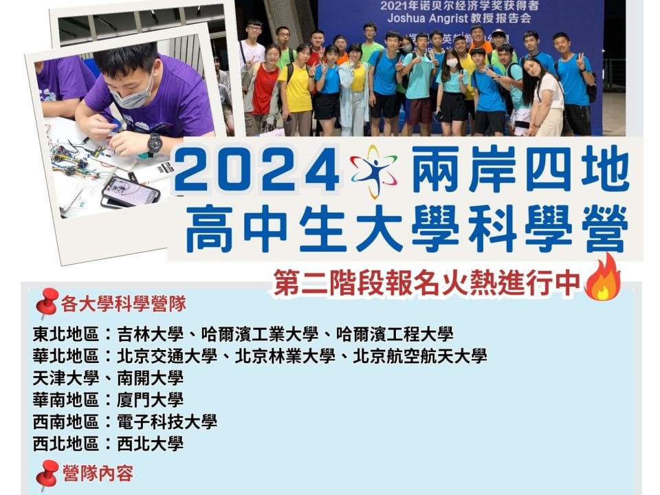 (已截止報名)2024高中生大學科學營(兩岸四地)活動 第二梯次報名