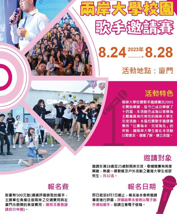 (已額滿) 2023第十五屆兩岸大學校園歌手邀請賽