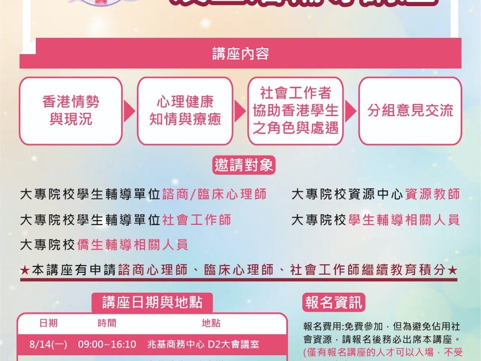 (活動已結束)112年度港人身心健康及生活輔導講座